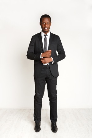 Handsome african american business man posing isolated. Young confident businessman in suit. Success, professional concept