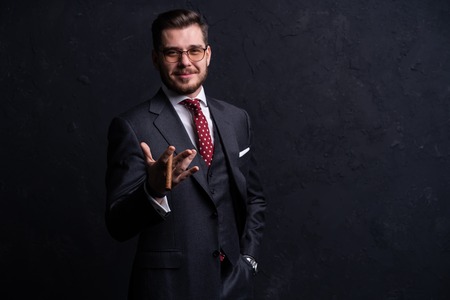 Man in elegant custom tailored expensive suit posing in the office