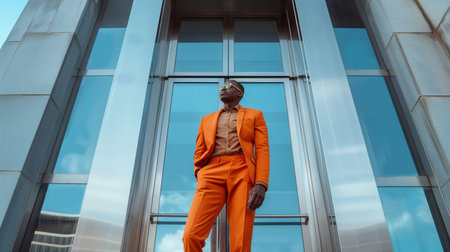 A Stylish African American Man Poses Confidently Against A White Building. Сoncept Street Style Fashion, Urban Photoshoot, Confident Portraits, Modern Gentlemen, City Vibes.