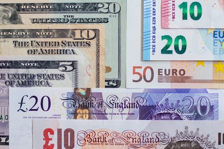 Money background, currency exchange, paper banknotes from different countries. Money cash currency as a financial background for your design