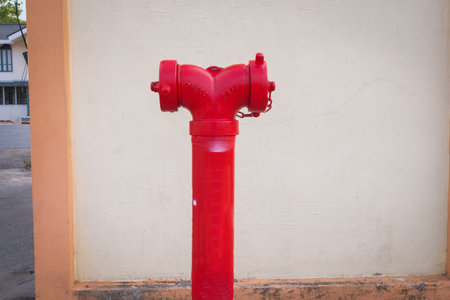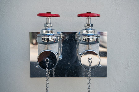 A red pipe of water valve tank and FDC (Fire Department Connection) at the outside of building.