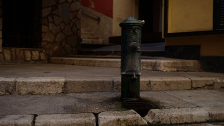 NICE, FRANCE - CIRCA MARCH, 2023: Old water column faucet in old town of Nice, France