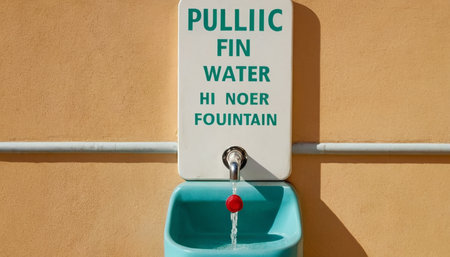 Public water faucet sign on the wall with copy space.