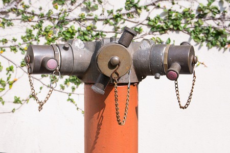 Old metal standpipe on the wall.