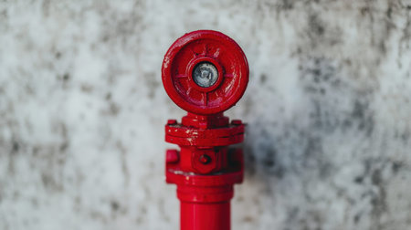 A striking close-up of a bright red fire hydrant against a textured concrete wall, emphasizing emergency preparedness and the critical role of fire safety in urban environments.
