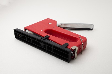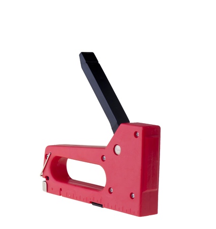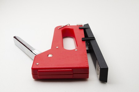 Red Stapler Gun.shoot on white background. Useful for office and household. Manage and combine document.