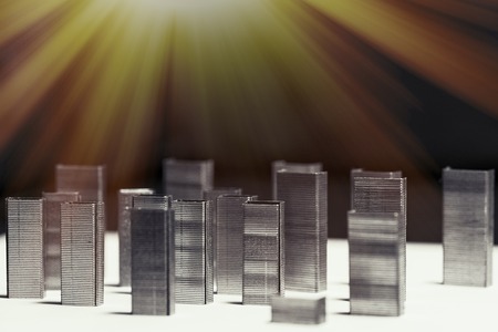 Fill of stapler are arranged neatly in a row so that they form like skyscrapers