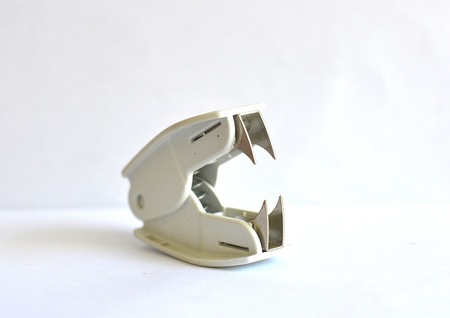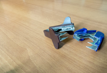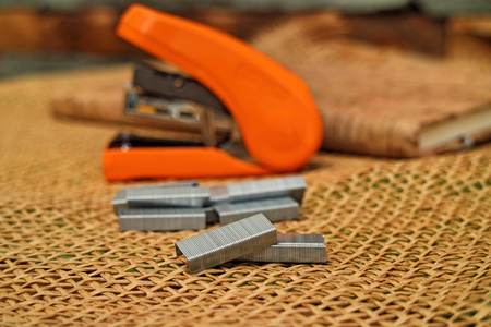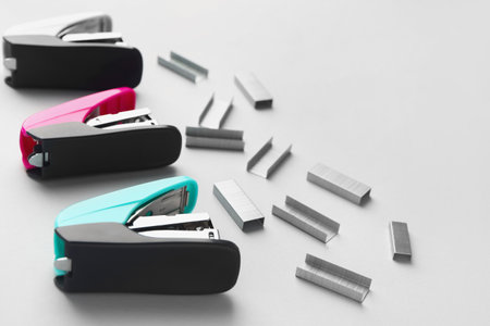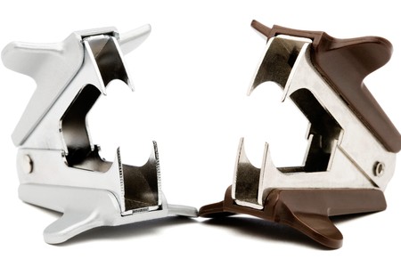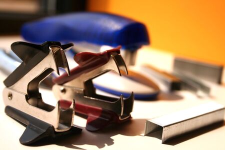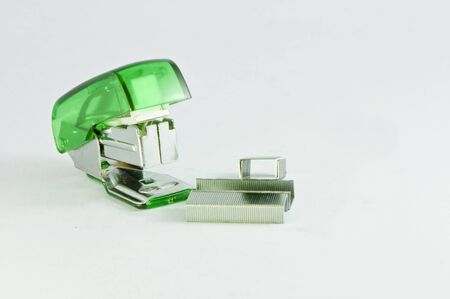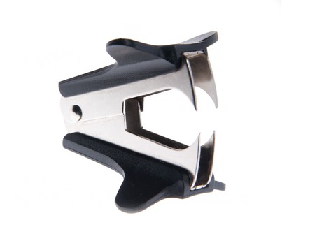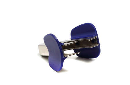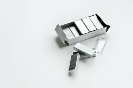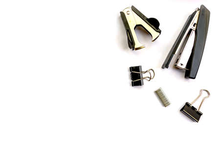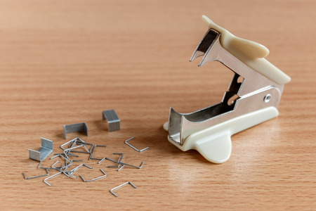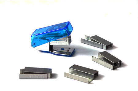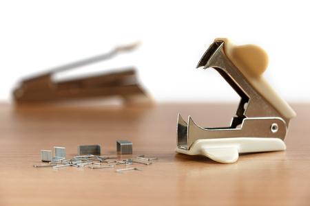 Anti-stapler with clerical staples on a white background. stationery. stapler