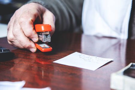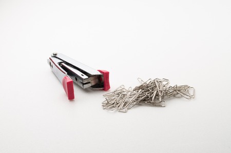 Stapler and Paper Clip. The binder and paper organizer. Focus on the closes distance.