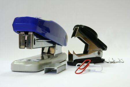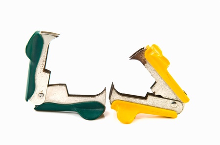Stapler and anti-stapler with staples on a white background. office supplies isolate