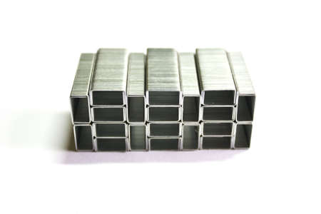 Stack of metal staples. Isolated on a white background.