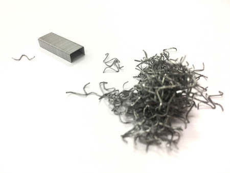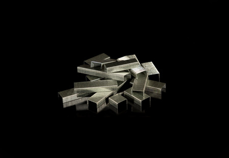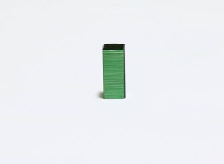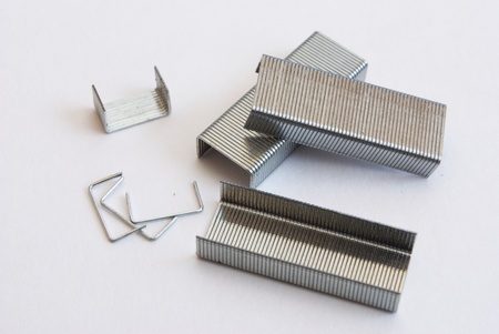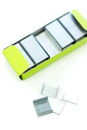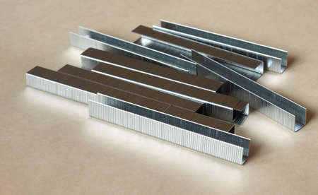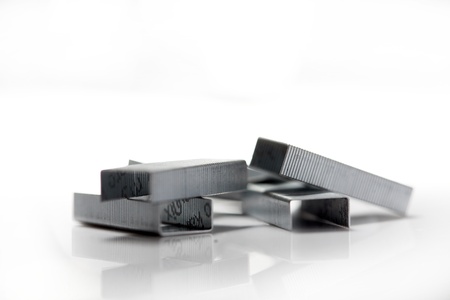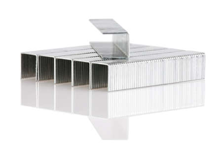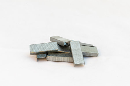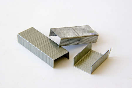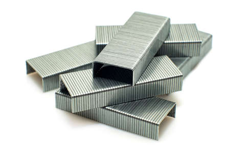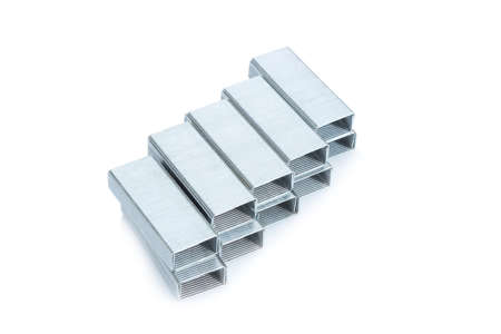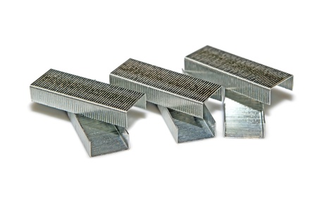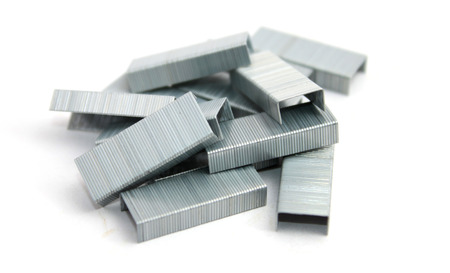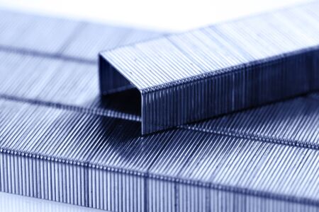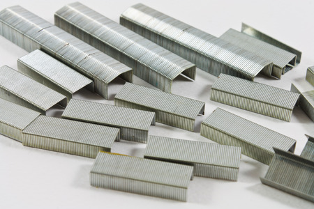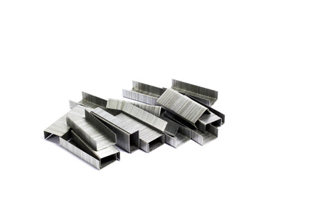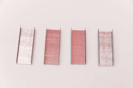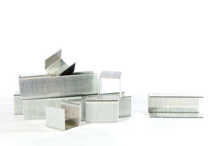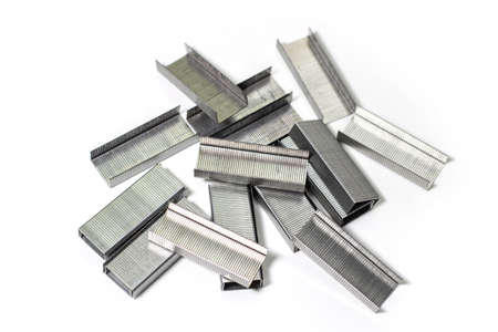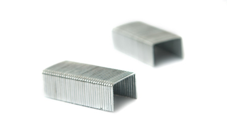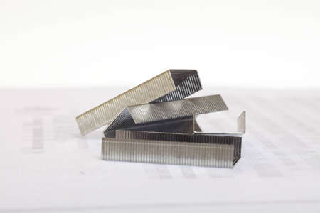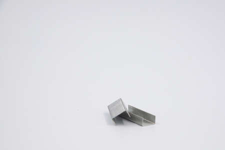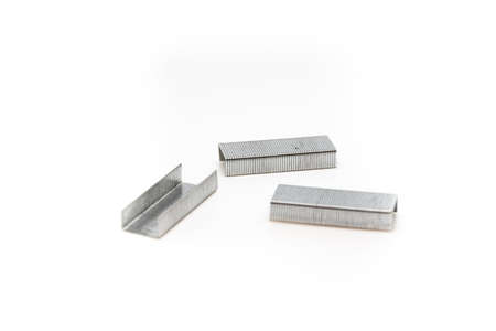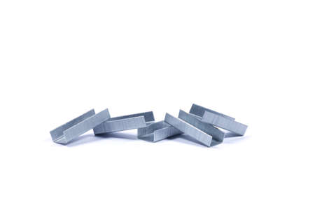 Stapler staples isolated on a white background. Close-up. Copy space. Space for text