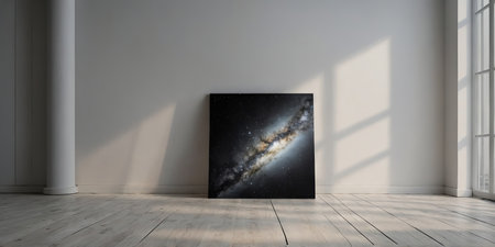 AI Generated. minimalist blank art canvas mockup on laminate floor white wall background