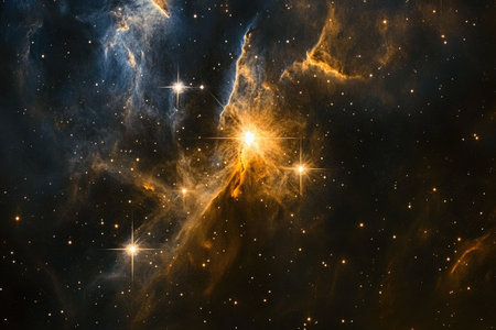 Bright stars shine brilliantly in a cosmic formation against the dark backdrop of space.