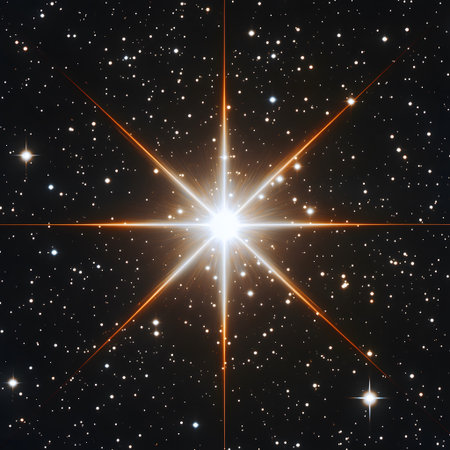 A close-up of a single, bright star shining prominently in the night sky, with a dark and vast space background creating a striking, minimalist effect.