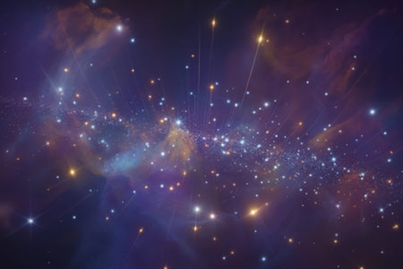 Vivid view of a galaxy featuring bright stars, nebulae, and dense star clusters amid a stunning cosmic backdrop