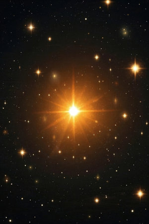 Illustration of a starburst in the night sky with lens flare