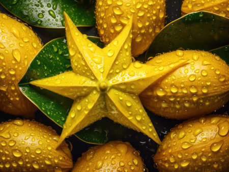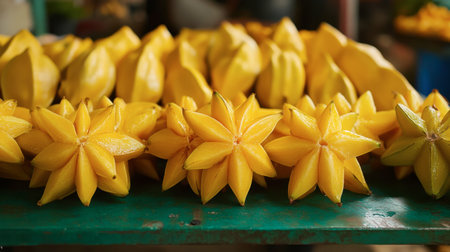 Thai starfruits arranged on a table, their golden yellow color and unique star-shaped slices tempting to eat.