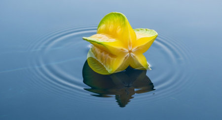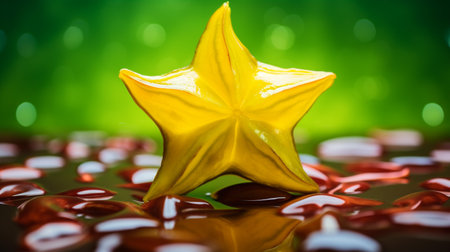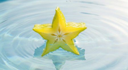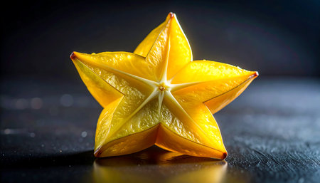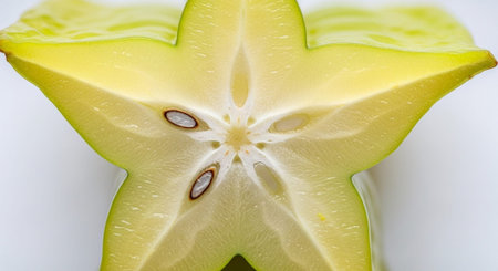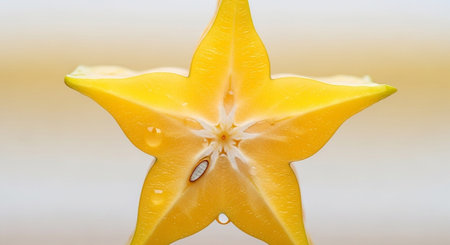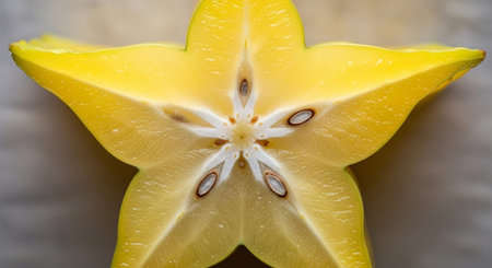 Vibrant Starfruit Slice, Isolated on Yellow, Tropical Fruit, Star Shape, Healthy Snack