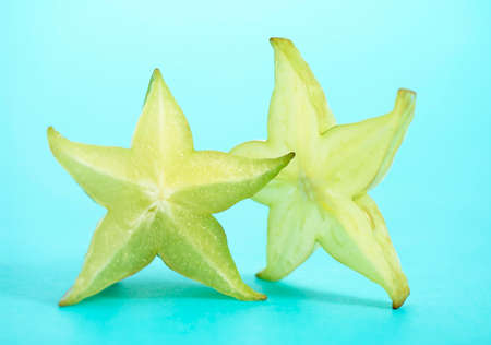 Carambola Star Fruit, averrhoa carambola, Fruit against Blue Background