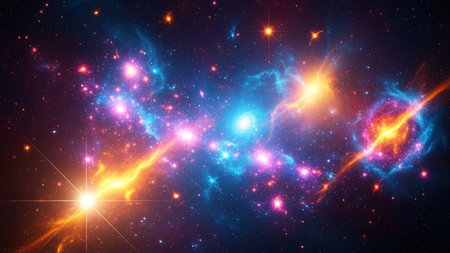 Stunning cosmic background featuring bright stars and colorful nebulae, perfect for space themed designs and projects