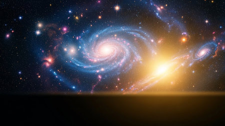 A magnificent spiral galaxy shows vibrant colors and intricate structures against a backdrop of countless stars. The scene highlights the beauty of deep space exploration and discovery.