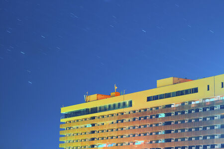 Building under star sky colorful