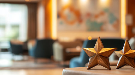 Elegant decorative stars as focal points in a cozy lounge area at a modern hotel lobby