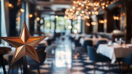 A golden star hangs in a restaurant window
