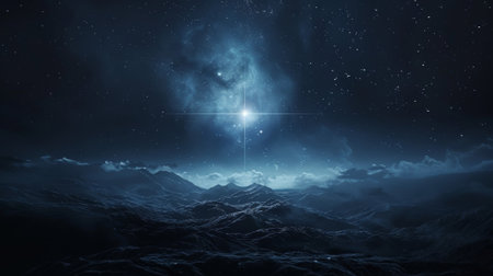 This mesmerizing image captures a brilliant star shining against the dark backdrop of the vast night sky, highlighting the beauty of distant cosmic elements.