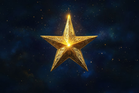 A beautiful golden star illuminates the dark sky with detailed textures, creating a captivating view.