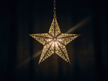Capture the magic of the season with this stunning ornate gold star ornament, radiating warmth and casting spellbinding starburst shadows perfect for festive holiday decor.
