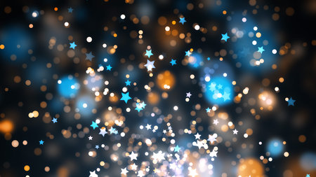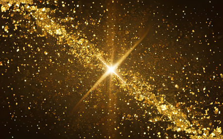 A scattering of golden star confetti creates a festive and celebratory atmosphere against a dark, elegant black background. Perfect for holiday themes.
