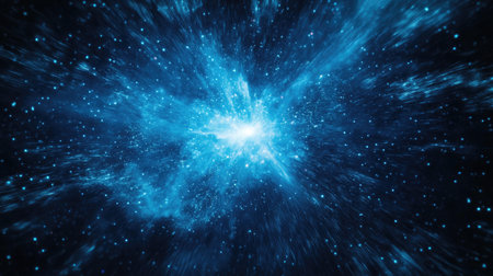 Experience the mesmerizing beauty of a cosmic explosion featuring vibrant blue colors, an illusion of depth, energy, and movement in space.