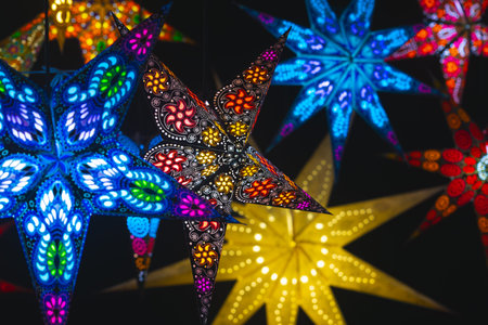 A collection of colorful lights in the shape of stars
