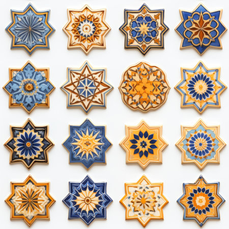 Abstract isolated tiled mosaic star polygon set
