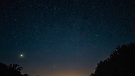 Deep night sky with many stars and forest