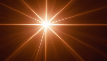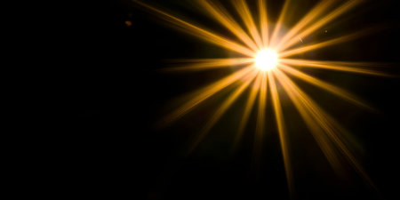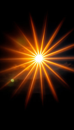 A vibrant light source radiates bright rays in all directions creating an eye catching effect. The contrast with a dark background enhances the striking visual appeal.