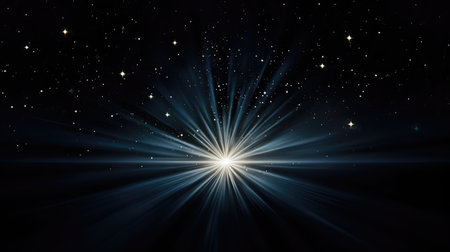 Celestial burst: radiant light and starry sky explosion.