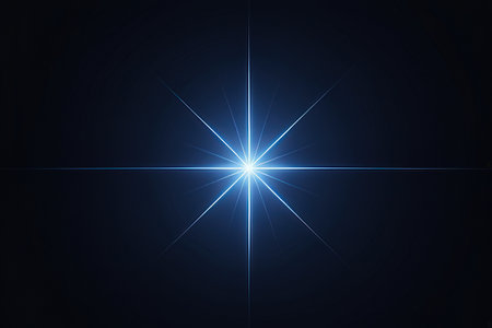 Blue star burst with lens flare and bokeh effect on black background