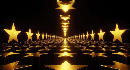 Rows of golden stars are scattered across a dark surface, creating an enchanting and glittering atmosphere ideal for evening celebrations or artistic displays.