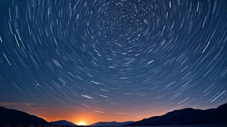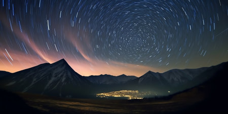 Generative AI : manipulation of luminosity when shooting allowed to clearly identify the movement of stars in the night sky in the Alps Switzerland A particularly long panorama sho