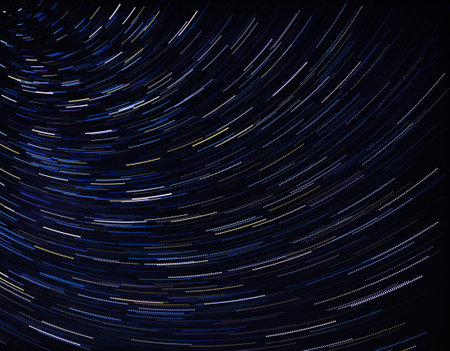 Abstract decorative background with stars and circle traces of stars revolving around the North Star on the background a black night sky