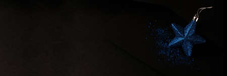 Blue shiny Christmas star on a matte black background. Minimalistic Christmas concert