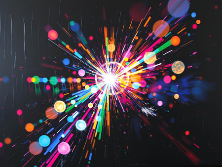 A stunning visual of a colorful explosion showcasing vibrant light particles against a dark background, perfect for abstract design or dynamic themes.