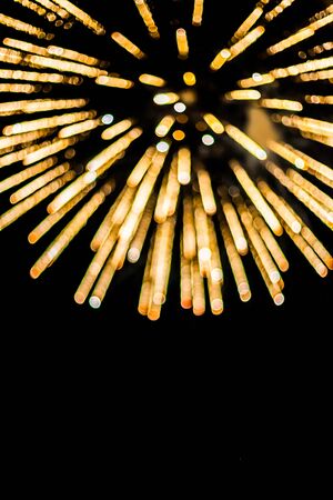 Abstract background with golden lights and beams. Festive background with fireworks.