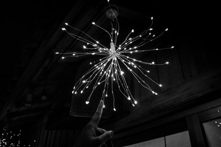 Stunning visual of dynamic light bursts resembling stars in a dark sky. This captivating image creates a magical atmosphere ideal for various creative projects.