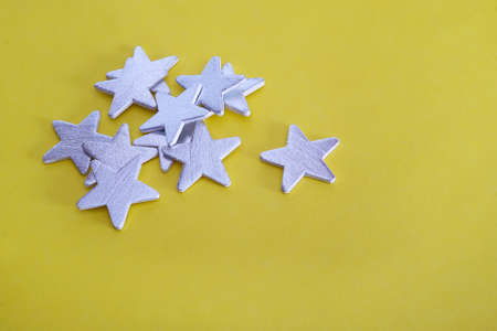 Traditional christmas yellow background with silver stars for greeting lettering or announcement