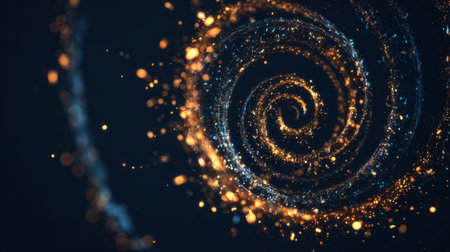 A swirling formation of golden stars and cosmic dust creates an enchanting spiral effect in the depths of dark space, evoking a sense of wonder and infinity as it moves through celestial realms.