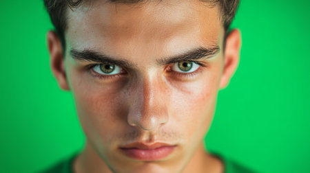 Macro Shot of Striking Green Male Eyes with Vibrant Eyebrow Detail for Future Vision and Insight